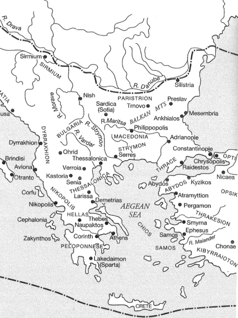 Since 680, the First Bulgarian Empire was a significant political entity in the Balkans, challenging even the Roman Empire for power. After its “Golden Age” under tsar Symeon (893–927), and relative peace under his son Peter (927–969), in 971 Bulgarian ruler Boris II (969–971/977) was forced to abdicate, and was held captive in Constantinople by the Roman emperor John Tzimisces, preceded by years of animosities (969–976) (for more details see Stephenson 2004, 51–53). The abdication of Boris II gave the Roman Empire control over former Bulgarian lands between the Danube and the Heamus Mountains, and between Iskar river and the Black Sea (Madgearu 2013, 37; cf. Krsmanović 2008, 144; Holmes 2002, 95f.). Lower Danube was possibly organized into another one of Roman administrative units. These administrative units were named themes. Some independent fragments of Bulgarian territories remained in the region of today’s Northern Macedonia (Hussey 1950, 71; Stephenson 2004, 55–58; Madgearu 2013, 30f., 37; Litavrin 1987, 202–205).