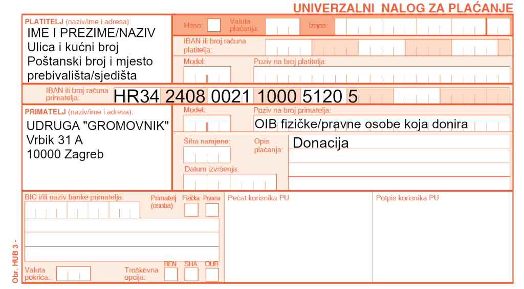 Podatci Udruge “Gromovnik” za plaćanja: